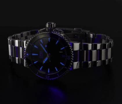 Material: Mehrteiliges Edelstahlgehäuse, drehbare Keramik-Lünette mit Minutenskala