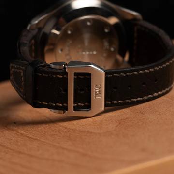The 46mm stainless steel case is fine-brushed with polished accents on the bezel, and the matte black dial is optimized for instant reading. The large Arabic numerals and hands are coated in high-grade luminescence, while the date window at 6 o’clock adds modern practicality. The watch is traditionally paired with a thick, riveted buffalo leather strap, completing its rugged, functional aesthetic. For the collector who values the origin story of the IWC Big Pilot, the IW500201 remains the ultimate choice.