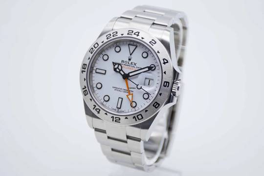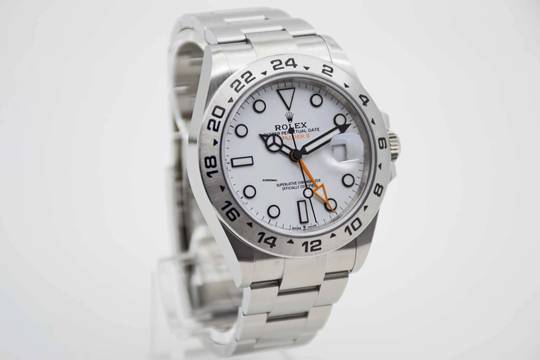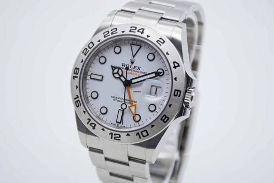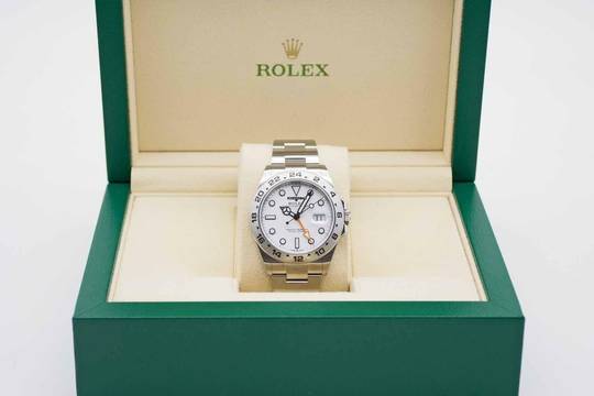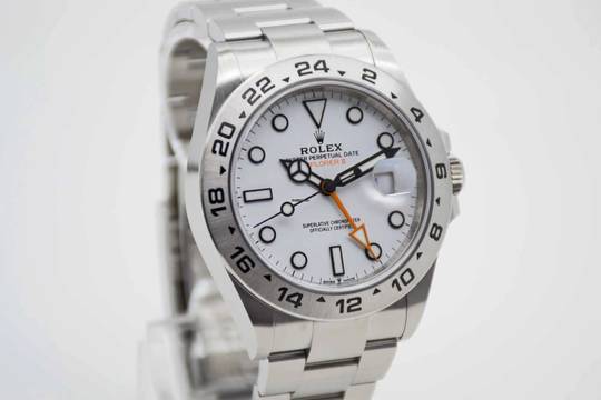 Explorer II Polar 226570, 42 mm Gehäuse mit weißem Zifferblatt und Rolex Oyster Armband. Perfektes Fullset in Rolex Box mit Umkarton, deutschsprachiger Explorer Anleitung, Garantie Booklet, Hang Tag, grünem Lederetui und Rolex Garantiekarte aus 2022 (Rolex Garantie bis 2027). Die Uhr befindet sich in perfektem und neuwertigem Zustand. Inzahlungnahmen sind nur im Direktgeschäft möglich. Bitte sprechen Sie uns hierzu an. Explorer II Polar 226570, 42 mm case with white dial and Rolex Oyster bracelet. Perfect full set in Rolex inner and outer box, with green leather wallet, Explorer manual, warranty booklet, hang tag and Rolex warranty card from 2022 (Rolex warranty valid up 2027). The watch comes in perfect and mint condition like new. Trades are possible. Please keep in mind that our complete inventory is stored in our bank safe for safety purposes.