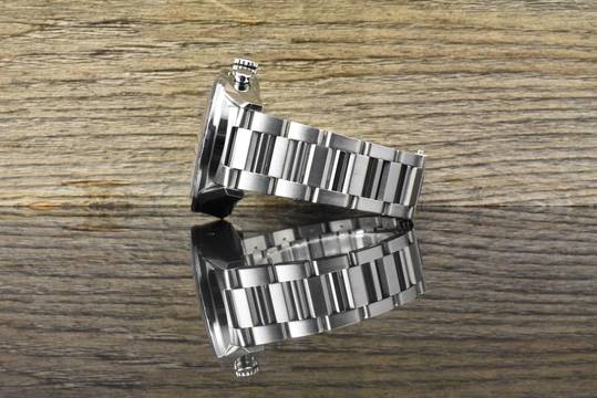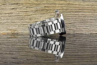 Armband: Stahl mit leichten Tragespuren, für einen maximalen Armumfang von ca. 19cm geeignet