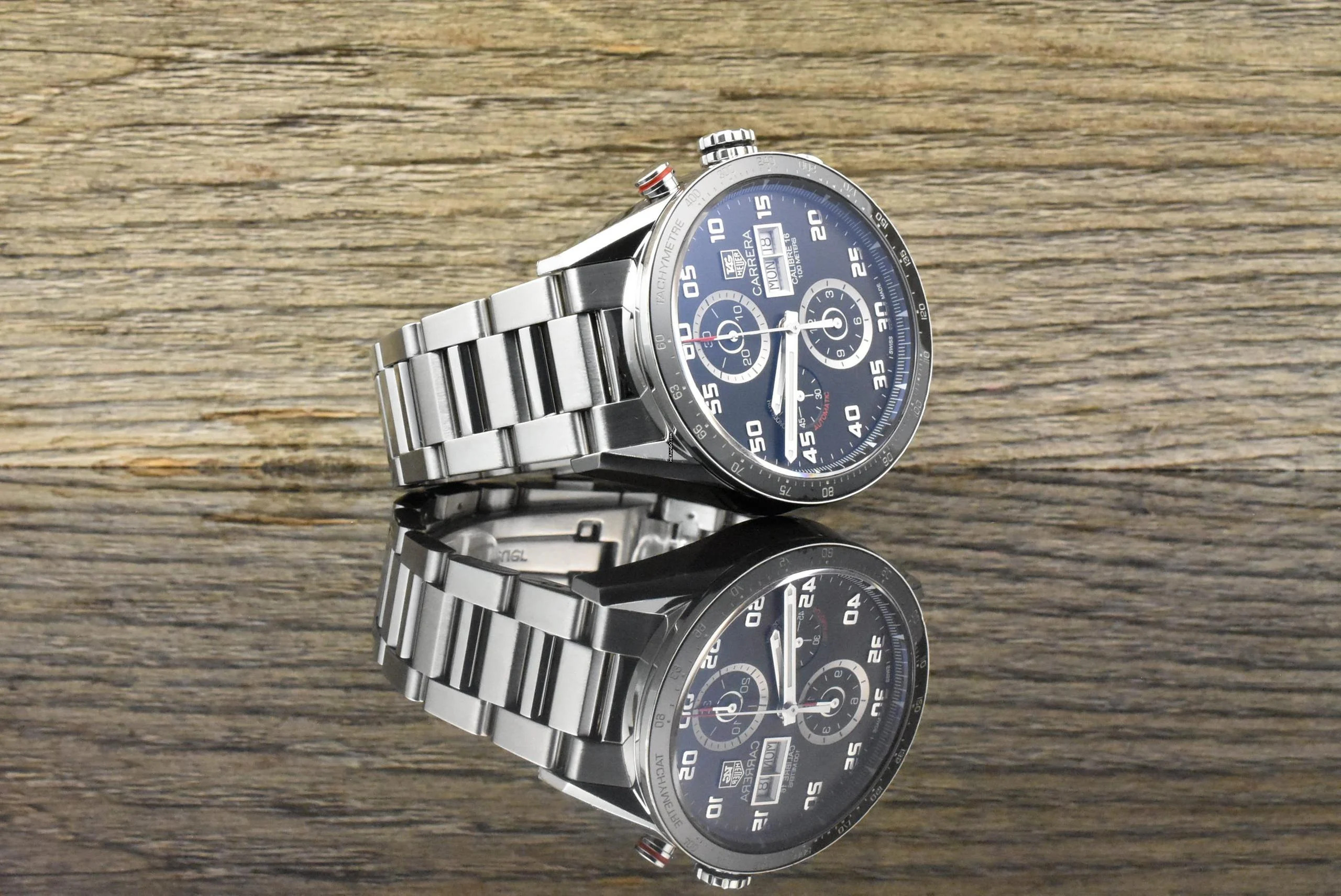An alle Freunde des guten Geschmacks, angeboten wird ein schöner unpolierter Tag Heuer Carrera Calibre 16 Day Date Chronograph 43MM Referenz CV2A1R.BA0799 in Stahl und schwarzer Keramik Lünette aus ca. dem Jahr 2010!