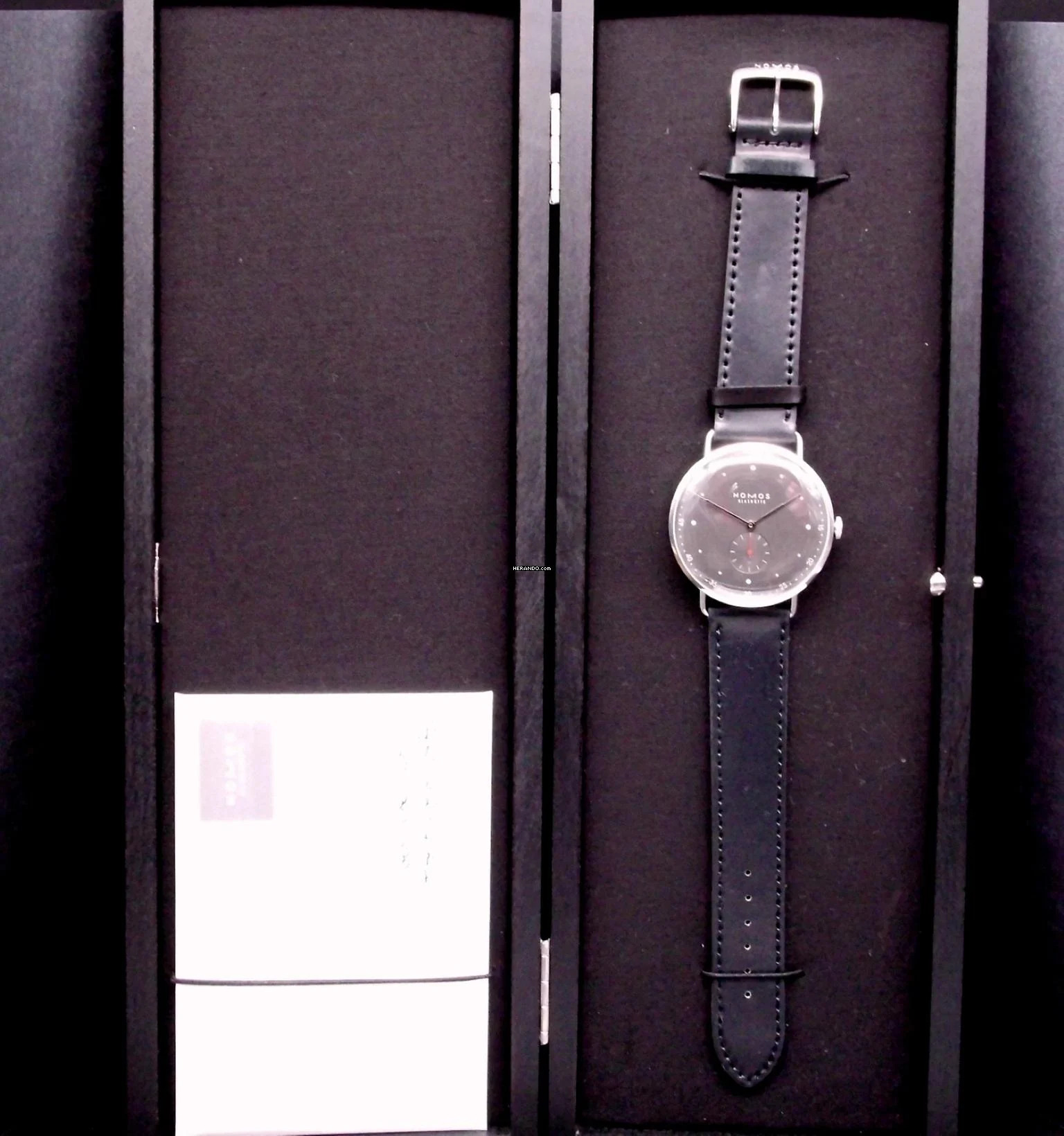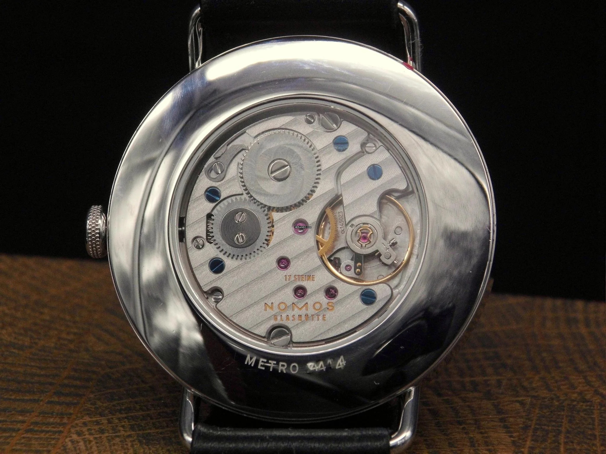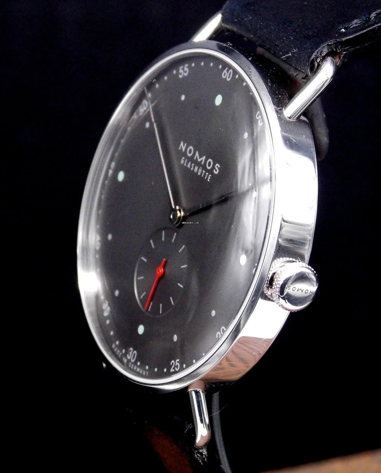 Im Angebot für Sie eine NOMOS Glashütte Metro 1111. Die Uhr wurde 2021 bei einem deutschen Juwelier von einem Sammler erworben und dann wenig getragen. Die Uhr wurde in unserer Uhrmachermeister-Werkstatt geprüft und wird mit der originalen Box, den originalen Papieren und einem neuen ungetragenem originalem Lederband ausgeliefert.