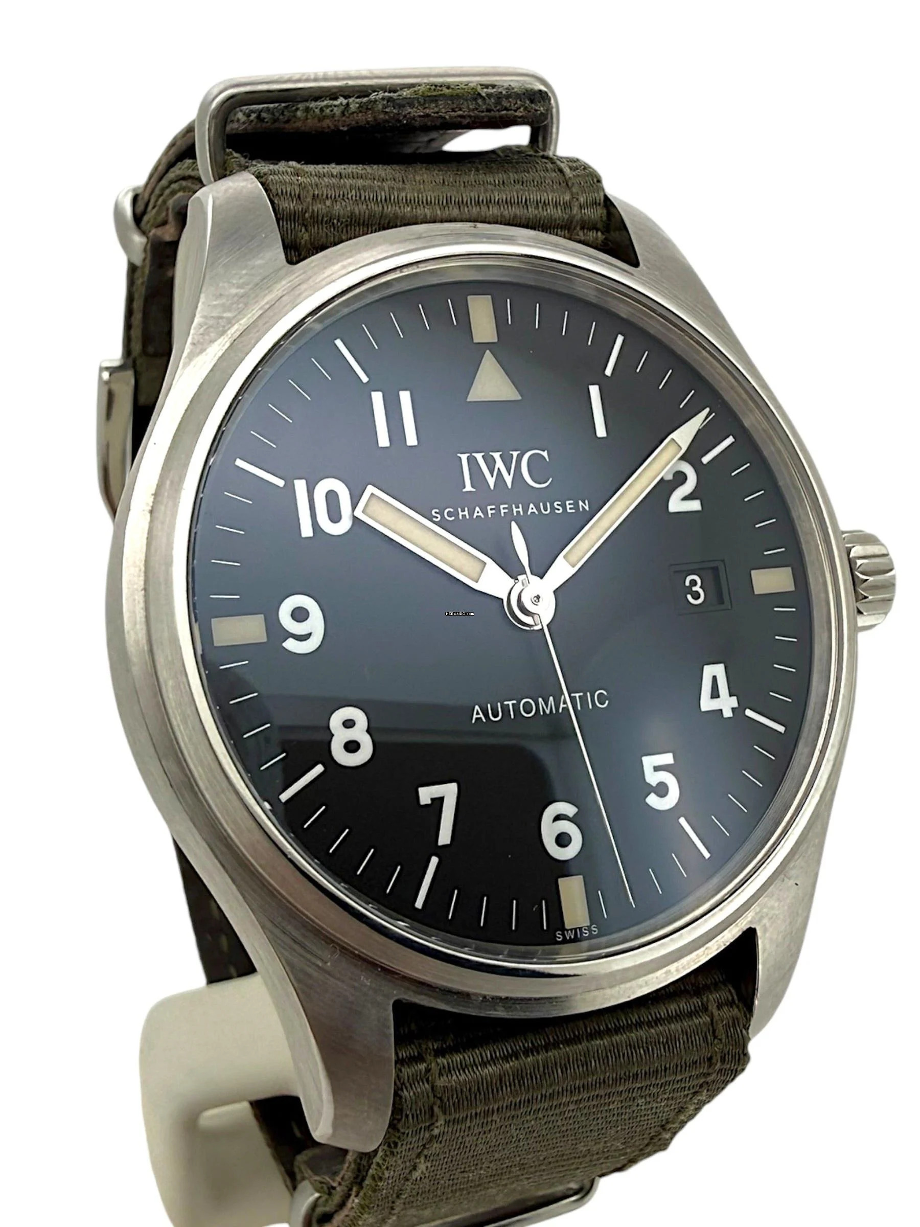 Im Inneren arbeitet ein zuverlässiges automatisches Uhrwerk auf ETA-/Sellita-Basis, bekannt für Präzision, Robustheit und Wartungsfreundlichkeit. Ausgeliefert wird die IWC IW327007 am NATO-Textilarmband, das den militärischen Ursprung der Mark-Serie unterstreicht und den authentischen Fliegeruhren-Look perfekt abrundet.