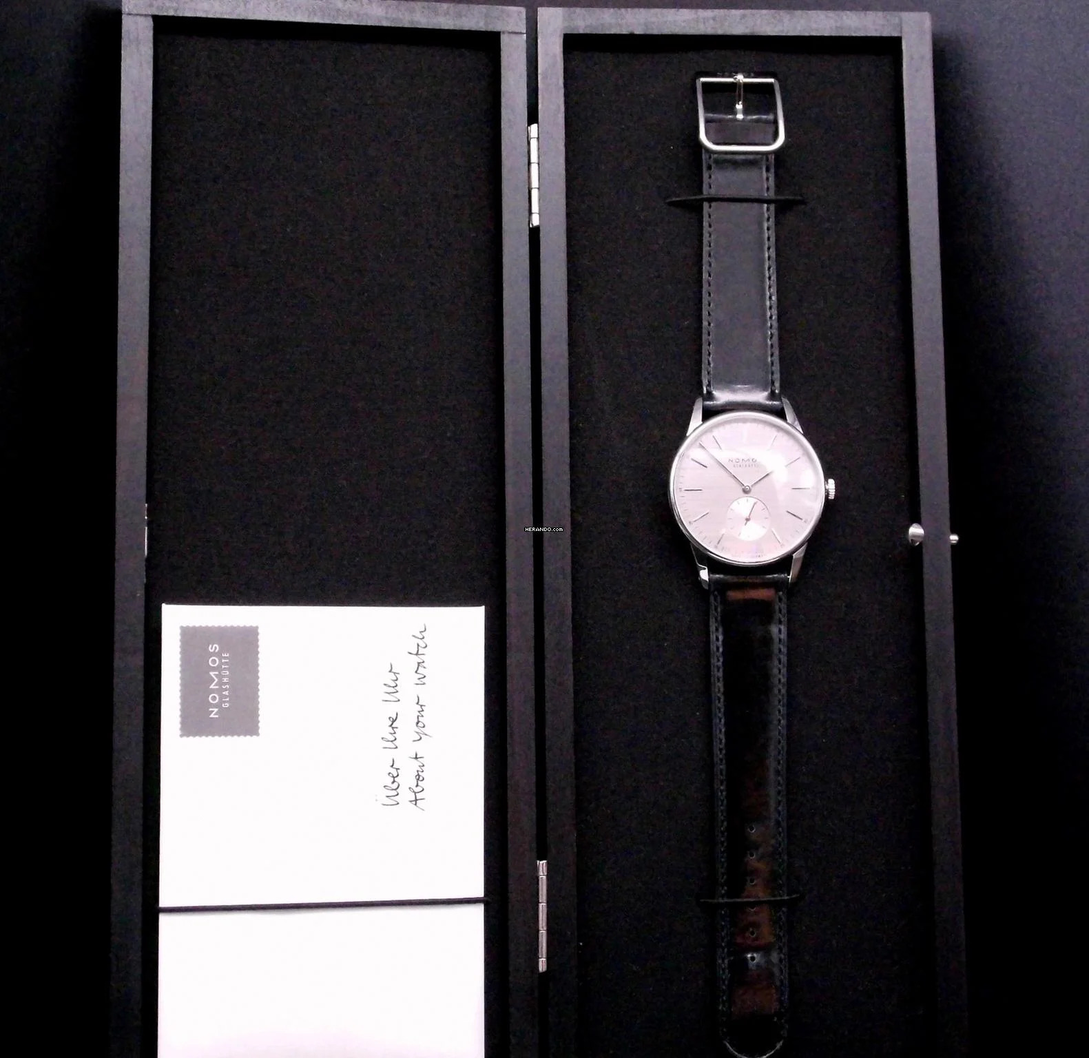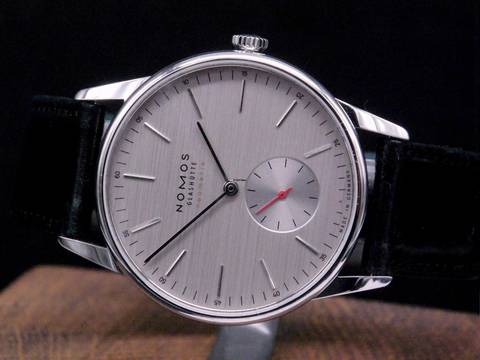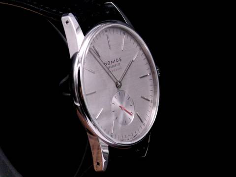 Im Angebot für Sie eine NOMOS Glashütte Neomatik Orion 342 Silvercut. Die Uhr wurde 2021 bei einem deutschen Juwelier von einem Sammler erworben und dann wenig getragen. Die Uhr wurde in unserer Uhrmachermeister-Werkstatt geprüft und wird mit der originalen Box, den originalen Papieren und einem neuen ungetragenem originalem Lederband ausgeliefert.