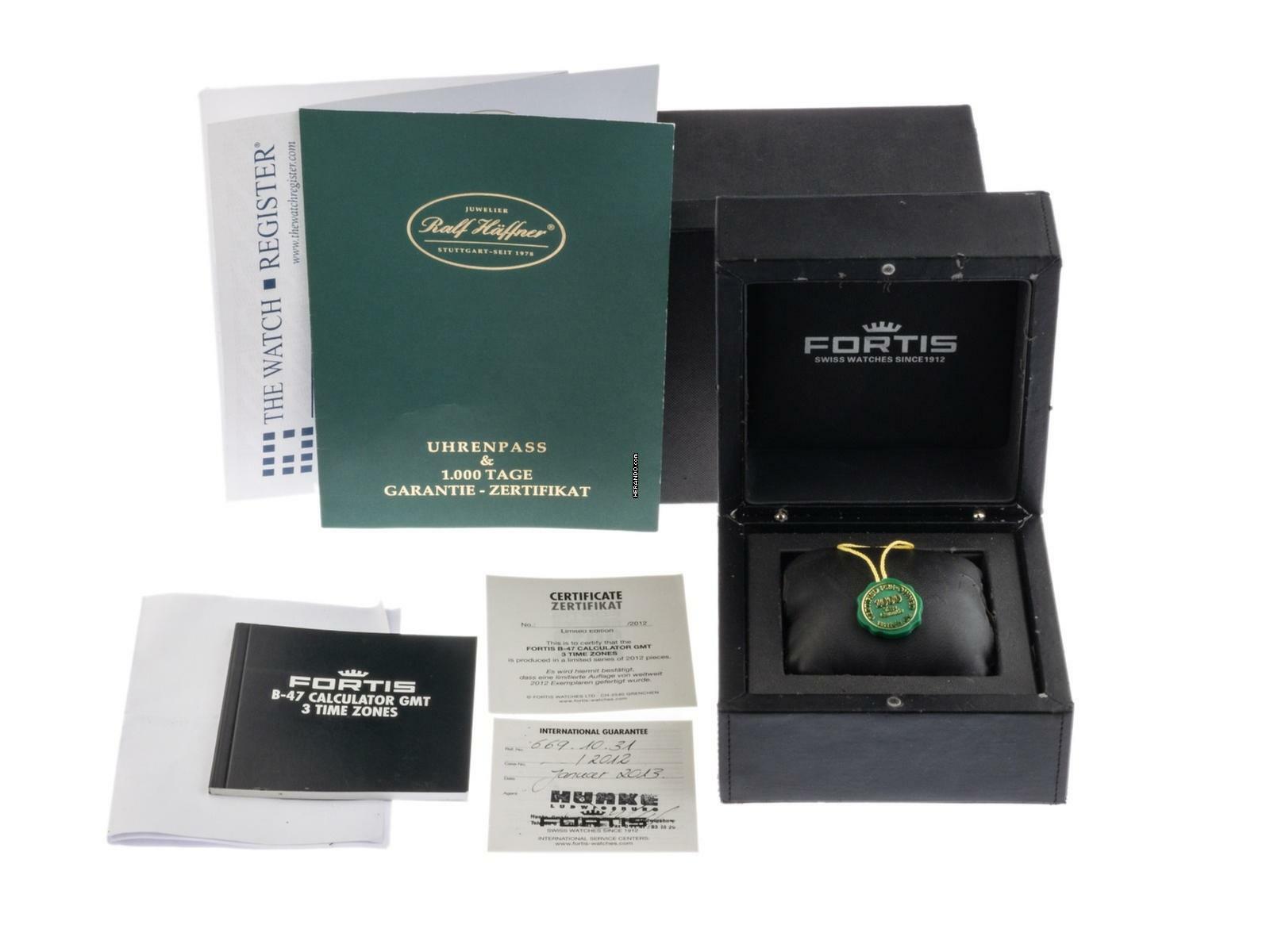 Fortis B-47 Calculator GMT 3 Time Zones Ref.669.10.31M 2013 Full Set wie Neu Vintage B47 Calculator GMT 3 Time Zones