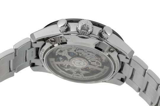 Zehntelsekunden-Chronograph:– Zentraler Chronographenzeiger, der eine Umdrehung in 10 Sekunden vollführt