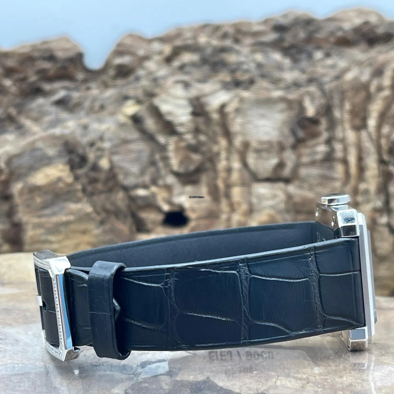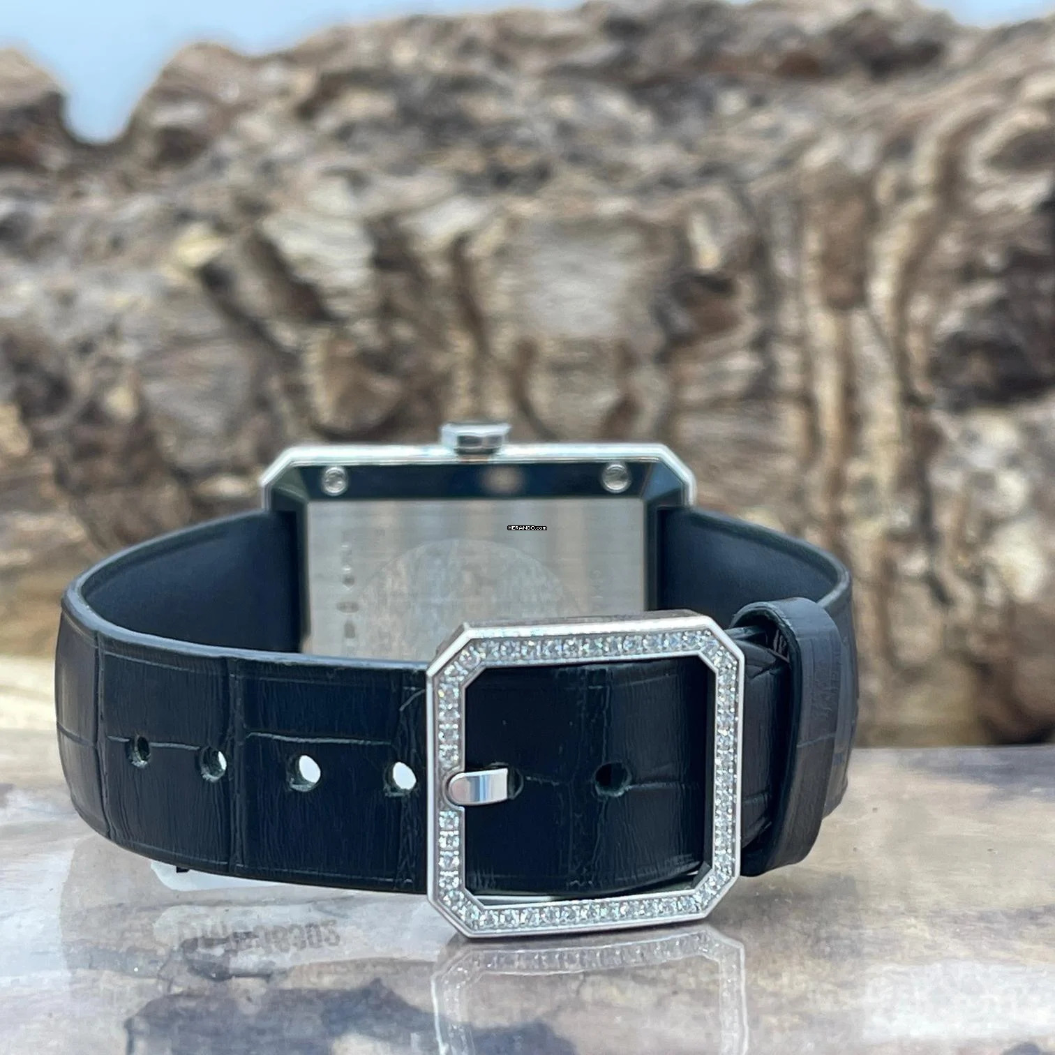 Case: 750er white gold, factory diamond setting on bezel, total weight ca. 45,5g