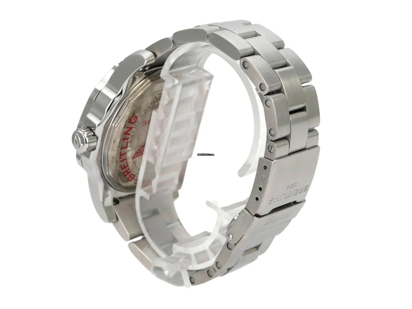 Gehäuse aus Edelstahl satiniert, Gehäusedurchmesser 44 mm, Gehäusehöhe 14 mm, Edelstahl-Lünette mit 60-Minuten-Skala, einseitig drehbar mit Sperre, Edelstahlband mit Faltschließe, schwarzes Zifferblatt mit aufgesetzten Leuchtindexen, Leuchtzeiger, Uhrwerk Quarzwerk, Kaliber Breitling 74, Chronometer mit Zeugnis, Datum, Krone verschraubbar mit Flankenschutz, Saphirglas beidseitig entspiegelt, Edelstahlboden verschraubt, wasserdicht bis zu 50 bar.