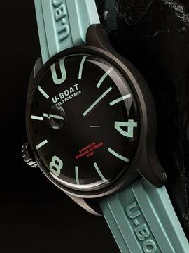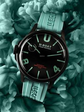 Zusätzliche Freude an Ihrer neuen U-Boat Uhr wird Ihnen das hochwertig verarbeitete Armband aus Kautschuk – Farbe: Türkis – mit Dornschließe bereiten. Das Kautschuk-Armband bietet einen hohen Tragekomfort und kann bis zu einem maximalen Handgelenkumfang von 220 mm getragen werden.