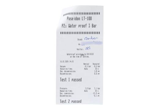 * Wenn die Uhr positiv auf Wasserdichtigkeit getestet wurde, dann gilt diese Eigenschaft zum Zeitpunkt der Messung. Wasserdichtigkeit ist nach DIN 8310 keine bleibende Eigenschaft. Sie sollte jährlich und vor besonderen Belastungen überprüft werden, da die eingebauten Dichtelemente in ihrer Funktion und im täglichen Gebrauch nachlassen. Einflüsse wie starke Temperaturschwankungen, Chlor, Seife oder Salzwasser wirken sich negativ auf die Wasserdichtigkeit aus.
