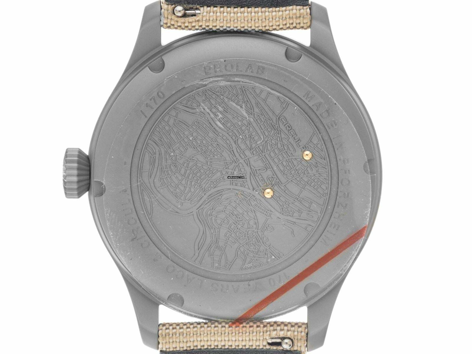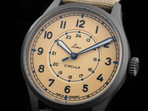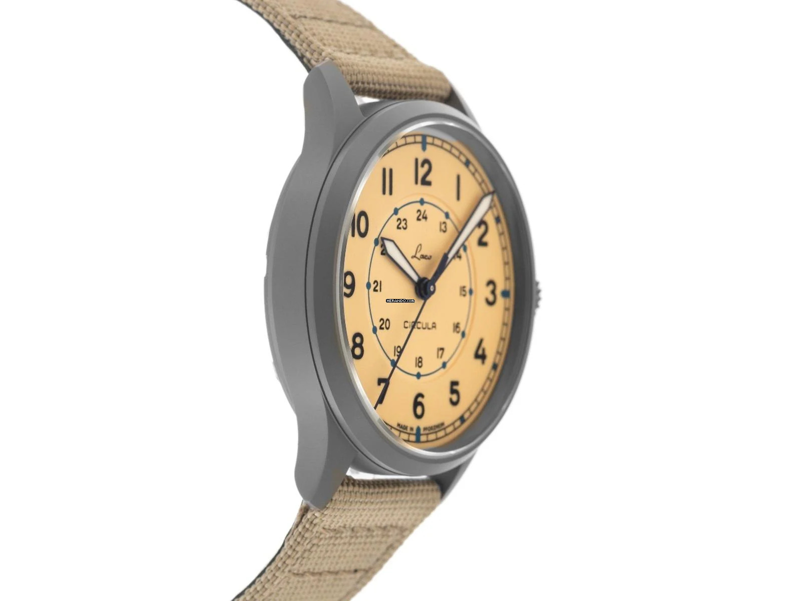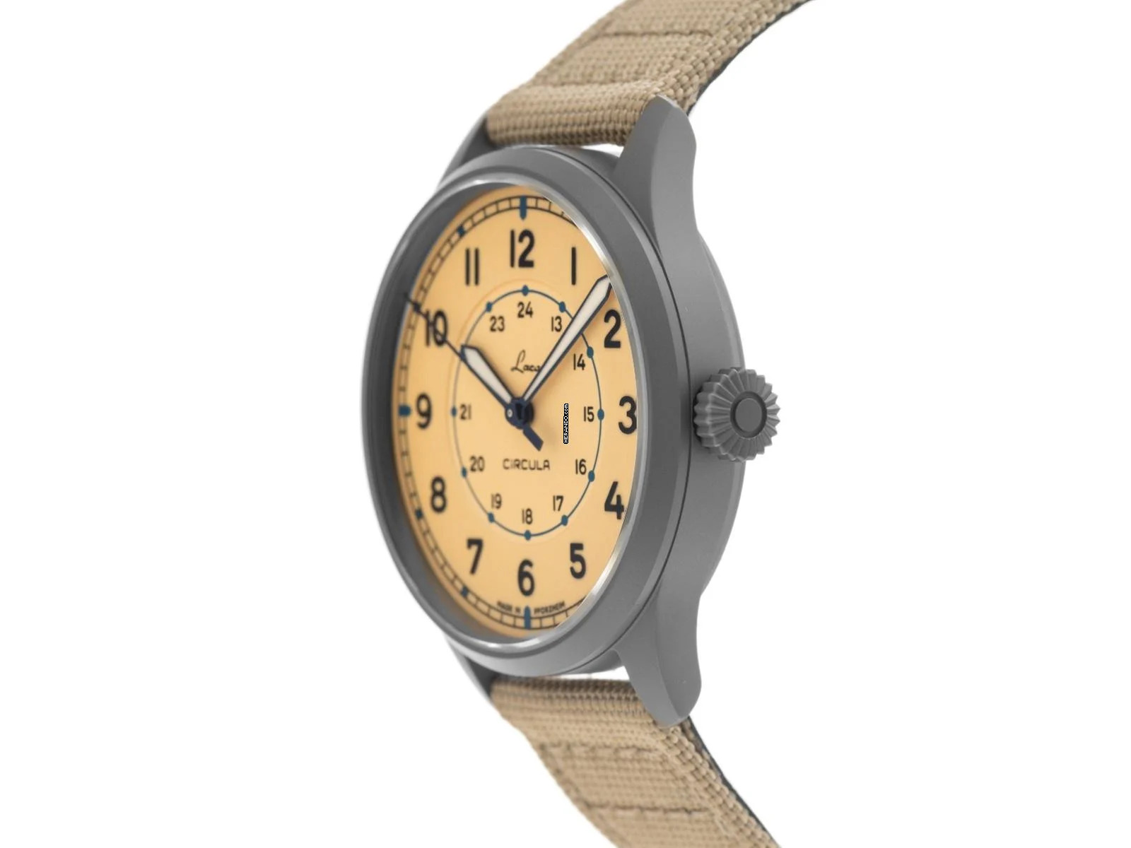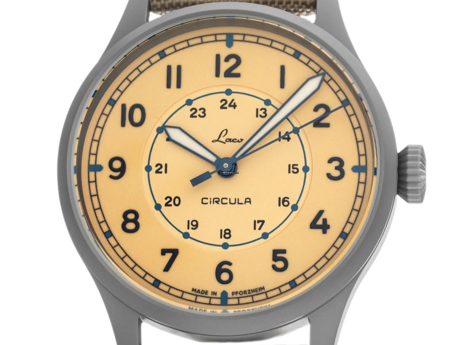 Laco Circula Editionen ProLab 2er Set Limitiert Stahl Automatik Armband textil Wenn sich Werte, Tradition und Herkunft verbinden, entsteht etwas Einzigartiges. Uhrmacherei in Pforzheim hat viele Gesichter. Zwei davon sind Laco und Circula. Seit Jahrzehnten gehen beide Marken ihren eigenen Weg – geprägt von Handwerkskönnen, Beständigkeit und einem klaren Blick dafür, was eine gute Uhr ausmacht. Solche Werte entstehen nicht über Nacht. Sie wachsen über Generationen, formen Identität und begleiten jede Entscheidung, die wir heute treffen. Gehäuse Edelstahl dunkel sandgestrahlt, Gehäusedurchmesser ohne Krone 40mm, Gehäusehöhe 11,3mm. Armband Segeltuch / Leder beige / schwarz mit Ziernaht, Anstoßbreite 20mm, Stiftschließe Edelstahl dunkel sandgestrahlt mit Hersteller-Logo. Zifferblatt Sandfarben mit aufgesetzten, gebläuten arabischen Ziffern und Indexen sowie gebläuten Leuchtzegern. Uhrwerk Automatik, Kaliber Laco 200, Basiswerk Sellita SW 200. Anzeige von Stunde, Minute und Sekunde über Zeiger aus der Mitte mit Sekundenstopp zur sekundengenauen Einstellung der Uhrzeit, Stunden- und Sekundenanzeige über äußeren Ring, Minutenanzeige über äußeren Ring. Saphirglas kratzfest, gewölbt und entspiegelt. Krone geriffelt. Boden Edelstahl dunkel sandgestrahlt verschraubt und graviert mit Stadtkarte von Pforzheim und zwei Markierungen der Standorte von Laco und Circula. Gewicht der Uhr inklusive Armband 74g. Wasserdicht bis 20 ATM. Referenznummer: L862193. Gehäuse Edelstahl satiniert, Gehäusedurchmesser ohne Krone 40mm, Gehäusehöhe 12,4mm. Armband Segeltuch / Leder schwarz / schwarz mit Ziernaht, Anstoßbreite 20mm, Stiftschließe Edelstahl mit Hersteller-Logo. Zifferblatt schwarz mit weißen arabischen Ziffern und Indexen sowie gebläuten Leuchtzegern. Uhrwerk Automatik, Kaliber Laco 200, Basiswerk Sellita SW 200. Anzeige von Stunde, Minute und Sekunde über Zeiger aus der Mitte mit Sekundenstopp zur sekundengenauen Einstellung der Uhrzeit, Stundenanzeige über inneren Ring, Minuten- und Sekundenanzeige über äußeren Ring. Saphirglas kratzfest, gewölbt und entspiegelt. Krone geriffelt. Boden Edelstahl verschraubt graviert mit Stadtkarte von Pforzheim und zwei Markierungen der Standorte von Laco und Circula. Gewicht der Uhr inklusive Armband 89g. Wasserdicht bis 15 ATM. Referenznummer: C862193, ID: ST061529380226H-2390, Artikelnummer: 10000084894. Original Laco / Circula Box und Garantie Papiere sowie Beschreibung und Laco / Circula Münze, Full Set. Neu. Limitiert auf 170 Exemplare. Lieferzeit sofort. Inklusive certified pre owned Siegel / Uhrenpass mit einem Farbbild, der genauen Beschreibung sowie dem Wiederbeschaffungswert der Uhr über 2390,-€ und 1000 Tage Garantie ab Kaufdatum.