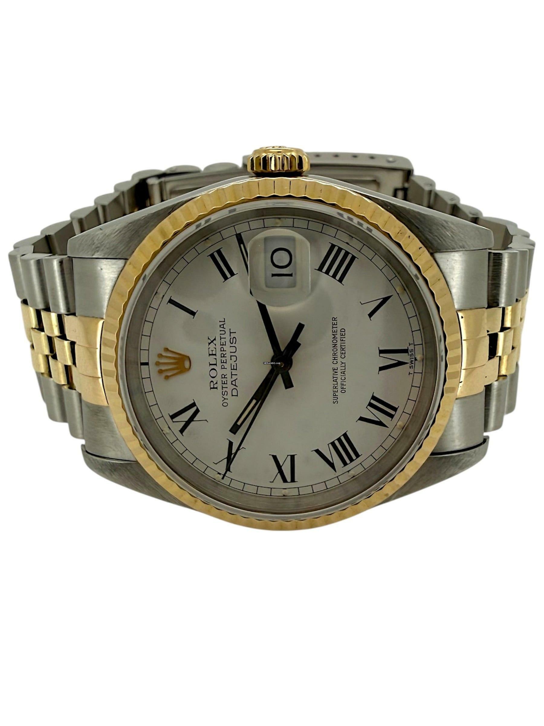 Diese Rolex Datejust 16233 ist ein begehrtes Modell für Sammler und Liebhaber klassischer Bicolor-Uhren.