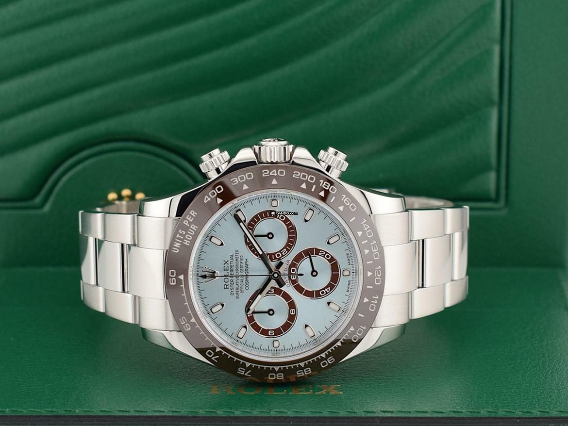 Rolex Cosmograph Daytona 116506 Platinum - Like New 2019 Il Rolex Cosmograph Daytona, lanciato nel 1963, è stato progettato per rispondere alle necessità dei piloti professionisti. Il movimento cronografico brevettato e la lunetta con scala tachimetrica consentono ai piloti l’esatta misurazione della velocità media fino a 400 chilometri orari o - a scelta - miglia orarie. Un’icona che nome e funzioni legano da sempre all’universo degli sport automobilistici e delle prestazioni elevate.