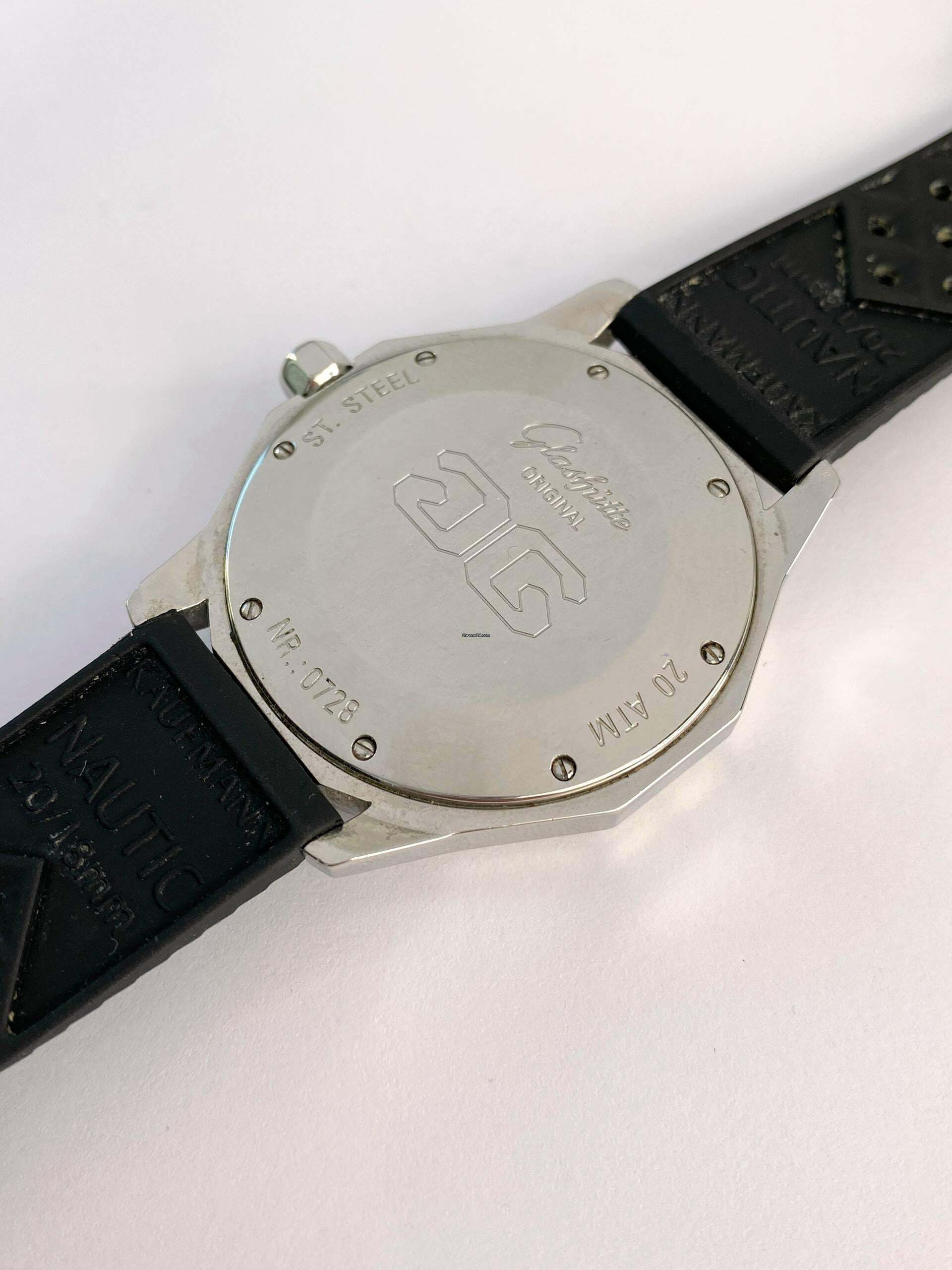 Das Kautschuckband ist vom Kaufmann. Die Schließe ist original Glashütte.