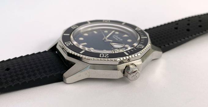 The rubber strap is from Kaufmann. The clasp is original Glashütte.