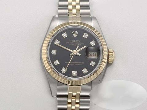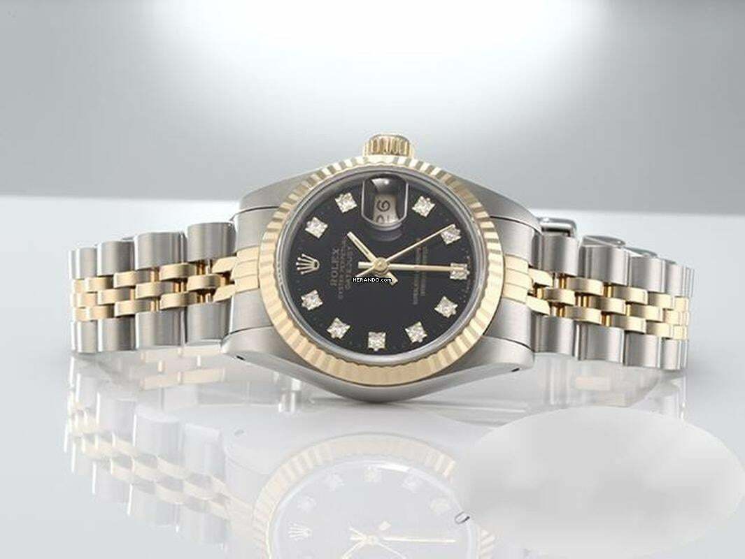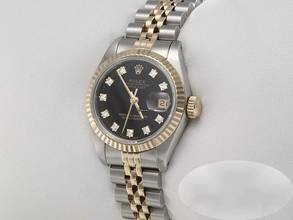 Rolex Lady-Datejust Edelstahl Gelbgold 750 Diamanten Automatik 18kt Yellow Gold Stahl Stainless Steel Jubilé-band Chronometer Oyster Black Dial