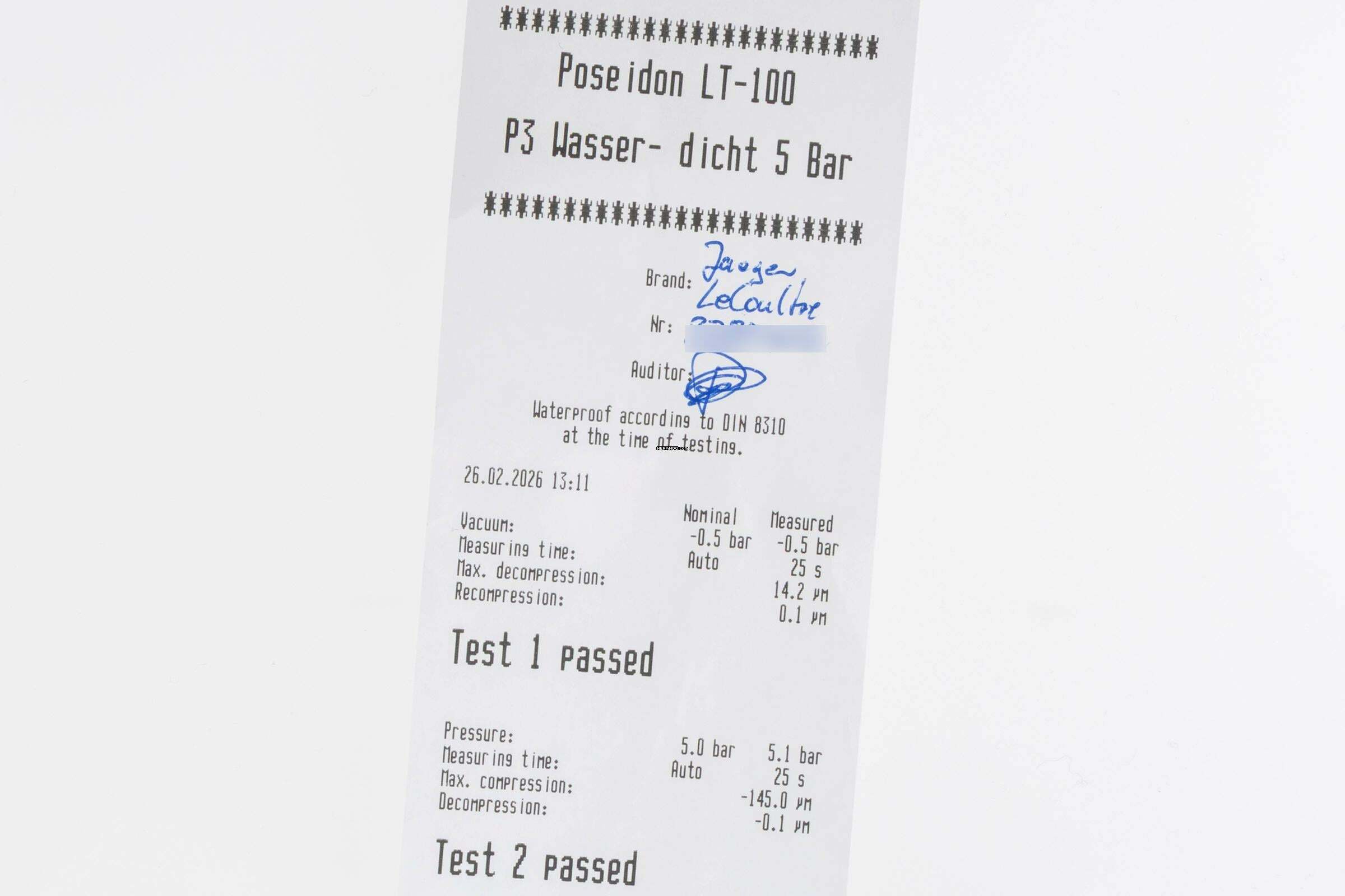 * Wenn die Uhr positiv auf Wasserdichtigkeit getestet wurde, dann gilt diese Eigenschaft zum Zeitpunkt der Messung. Wasserdichtigkeit ist nach DIN 8310 keine bleibende Eigenschaft. Sie sollte jährlich und vor besonderen Belastungen überprüft werden, da die eingebauten Dichtelemente in ihrer Funktion und im täglichen Gebrauch nachlassen. Einflüsse wie starke Temperaturschwankungen, Chlor, Seife oder Salzwasser wirken sich negativ auf die Wasserdichtigkeit aus.