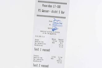 - Wasserdichtigkeit*: ja. Das Prüfprotokoll mit Prüfdruckangabe liegt bei.
