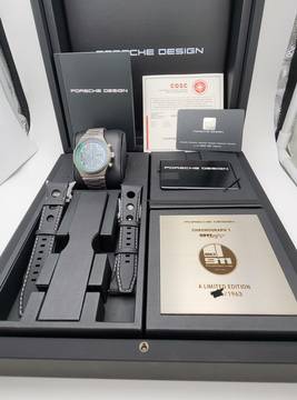 For sale is this nice Porsche Design 911 S/T 40 mm. Limited Edition Titanium with black dial, Titanium bezel and Titanium Bracelet + 2 leather Straps.