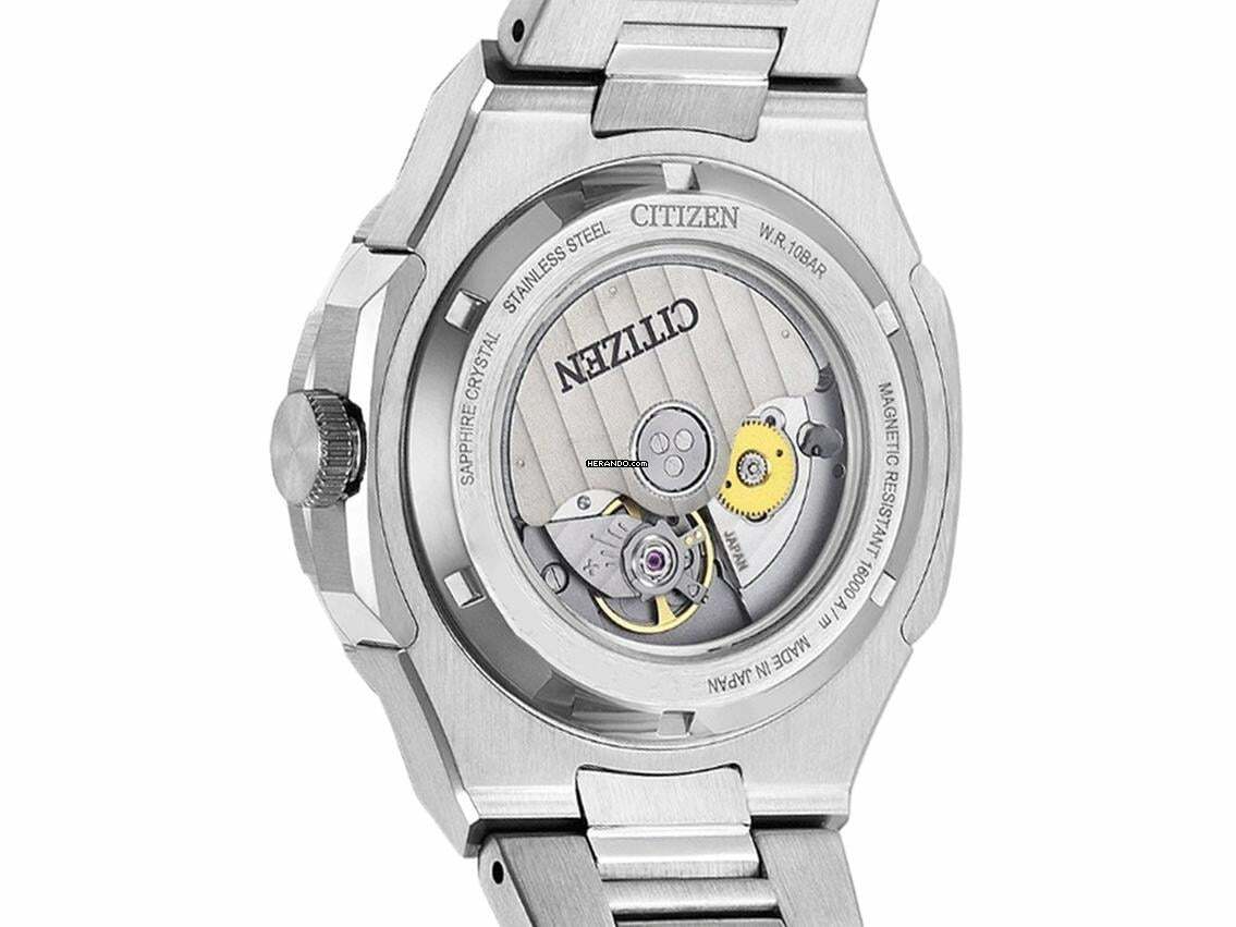 Citizen Mechanical Series 8 GMT Stahl Automatik Armband Edelstahl Gehäuse Edelstahl poliert, Gehäusedurchmesser ohne Krone 42mm, Gehäusehöhe 13,0mm. Lünette Edelstahl mit weiß / blauem Inlay, 24-Stunden Skala, beidseitig drehbar. Armband Edelstahl satiniert, Sicherheitsfaltschließe Edelstahl mit Hersteller-Logo. Zifferblatt blau mit aufgesetzten Indexen und Leuchtzeigern. Uhrwerk Automatik, Kaliber 9054 mit 24 Edelsteinen. Anzeige von Stunde, Minute und Sekunde über Zeiger aus der Mitte mit Sekundenstopp zur sekundengenauen Einstellung der Uhrzeit, Datumsanzeige mit Schnellverstellung bei 3 Uhr, zweite Zeitzone (GMT) ablesbar über Lünette, einstellbar über Zeiger mit orangener Spitze aus der Mitte. Saphirglas kratzfest. Krone geriffelt. Boden Edelstahl verschraubt und graviert mit Saphirglas Sichtfenster. Gewicht der Uhr inklusive Armband 182g, Länge des Armbandes inklusive Gehäuse 205mm. Wasserdicht bis 10 ATM. Referenznummer: NB6034-58L, ID: ST511114200326RE-1225, Artikelnummer: 10000085157. Original Citizen Box mit Umkarton und Garantie Papiere, Full Set. Neu. Lieferzeit sofort. Inklusive Uhrenpass mit einem Farbbild, der genauen Beschreibung sowie dem Wiederbeschaffungswert der Uhr über 1225,-€ und 1000 Tage Garantie ab Kaufdatum.