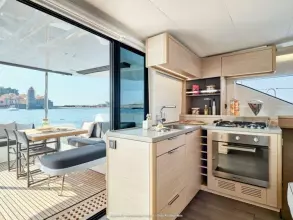 The Lagoon 51 has a flybridge that was optimized to cover 80% of its roof. Equipped with modular seating so you can accommodate as many guests as you would like, this allows you to welcome them to the helm and relax alongside the captain. A unique experience for your guests to enjoy.