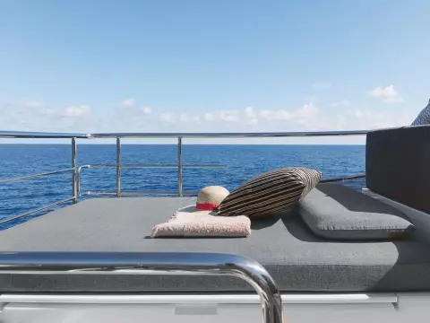 "ESCAPE" - an exquisite Azimut S7 yacht that embodies luxury, elegance, and unmatched performance. This stunning vessel, owned by its first owner, has been meticulously maintained and boasts a mere 900 engine hours, ensuring a pristine condition that will impress even the most discerning yacht enthusiasts. Step on board and prepare to be captivated by the opulent interior and spacious layout. "ESCAPE" offers accommodation for up to 8 guests in 4 cabins, providing a lavish and comfortable retreat for everyone on board. Each cabin has been thoughtfully designed with a blend of modern aesthetics and timeless sophistication, creating an atmosphere of refined relaxation. Powered by 3 Volvo IPS engines, this yacht combines power and efficiency to deliver an exhilarating cruising experience. Whether you're gliding through calm waters or cruising at high speeds, "ESCAPE" effortlessly combines performance and comfort, ensuring an unforgettable journey. One of the standout features of "ESCAPE" is its versatile garage that cleverly converts into a beach club. As soon as you open the door, you're greeted by a stylish and inviting space where you can enjoy the sun, sea, and the refreshing ocean breeze. This beach club provides the perfect setting for leisurely lounging, water activities, and unforgettable moments with friends and family. Throughout the yacht, meticulous attention to detail is evident, from the carefully selected materials to the exquisite craftsmanship. The interior spaces are adorned with high-quality finishes, luxurious furnishings, and state-of-the-art amenities, all coming together to create an ambiance of unparalleled luxury. "ESCAPE" also features ample outdoor living areas, including a spacious flybridge, perfect for entertaining guests or simply relaxing in the sun. Whether you prefer to bask in the warmth on comfortable sun loungers or savor a delicious meal al fresco, this yacht offers the ideal setting for every occasion. In conclusion, the Azimut S7 "ESCAPE" represents the epitome of luxury yachting. With its elegant design, powerful performance, and exceptional amenities, this vessel offers a truly extraordinary experience on the water. Whether you're seeking thrilling adventures or tranquil relaxation, "ESCAPE" is the perfect companion for unforgettable journeys and cherished memories.