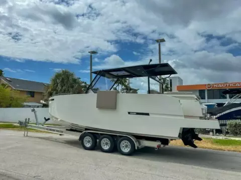 The V-shaped hull design allows for swift gliding, reaching a top speed of up to 38 knots with maximum motorization, while also providing a highly comfortable cruising experience. Its substantial beam and weight distribution not only contribute to a wide deck space but also enhance stability for anchoring.