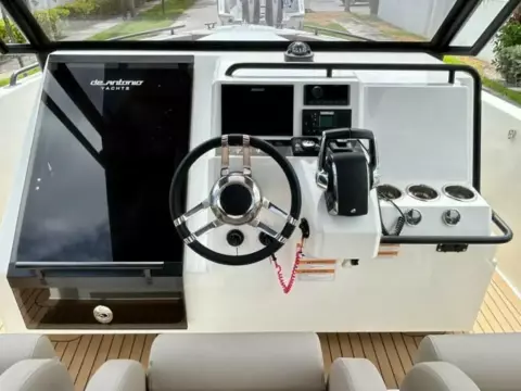 The D28 Xplorer combines unparalleled spaciousness on its walk-around deck with various seating areas and solariums, ensuring safety and onboard protection thanks to its semi-cabin structure.