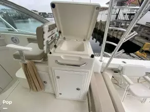 This boat shows well and pride of ownership is seen throughout. The cockpit upholstery has been replaced and all isinglass panels are in excellent condition. All systems function as they should per the seller. Recent 2000-hour caterpillar service done on the motors. She is in the water ready to go!!