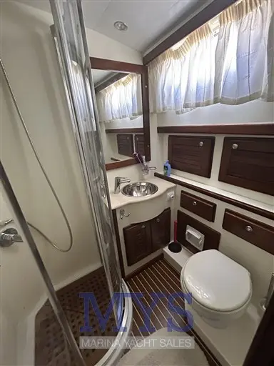 Preserving the traditional values and unique character of this traditional boat, this shipyard has been able to create a new generation of safe and comfortable cruising based on the elegance of classic lines with the advantages of modern technology. High maneuverability and adequate speed, Menorquin Yachts models stand out for their nautical qualities and its great habitability and comfort, both on deck and in cabin. GOOD GENERAL CONDITIONS, + AGENCY COMMISSIONS. FOR INFORMATION: GIANMARCO CARANI +INTERIORS 3 cabins, 2 bathrooms Forward master cabin with peninsula double bed and private bathroom with shower Guest cabin with single beds on the floor 2nd guest cabin with bunk beds Kitchen complete with sink, fridge, icebox, ceramic hob and microwave Dinette with sofa and transforming dining table Mahogany interior and wooden floors INSTRUMENTATION Compass Bar angle GPS Raymarine Radar Autopilot Electronic handcuffs Bow thruster - bow thruster Electric windlass Bow winch VHF Trumpet 220v shore outlet Charger Internal sockets 12v Internal sockets 220v TV system Speakers Stereo Radio AM\FM Black water system Washing machine Air conditioning Hot water boiler Autoclave Hydraulic Gangway Generator ARMAMENT Still Chain washing Awning Hard top Swimming ladder Outdoor shower Navigation equipment: Rudder angle indicator, Electronic engine control. Staging and technical: Bilge Alarm, Water pressure pump, Teak Side Decks, Deck Shower, Hydraulic Flaps, Hard top, Anchor Chain Washdown, Gangway (Idraulica Nuova nel 2020), Platform (in Teak), Automatic Bilge Pump, Manual Bilge Pump, Teak Cockpit, Shorepower connector, Electric Windlass, Tender (Nuovo 2020), Horn, Bow Winches. Domestic Facilities onboard: Warm Water System (Per l'acqua calda), Waste Water Plant, 12V Outlets, 220V Outlets, Electric Toilet. Entertainment: Hi-Fi. Kitchen and appliances: Galley, Icebox, Washer, Ceramic hot plate. Upholstery: Sunshade.