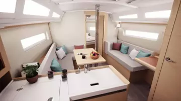 Its powerful hull makes for a perfect sailing experience. In addition to being particularly safe with its side decks that descend to the cockpit and its comfortable coamings, this Sun Odyssey benefits from a lowered boom that facilitates access to the sail and increases the sail area.
