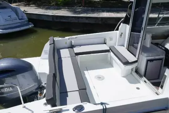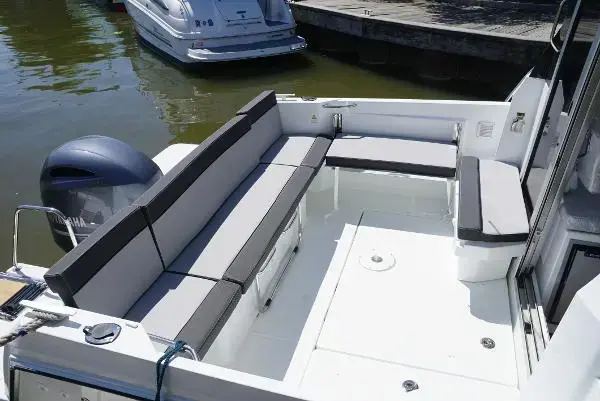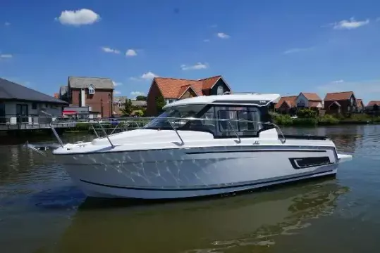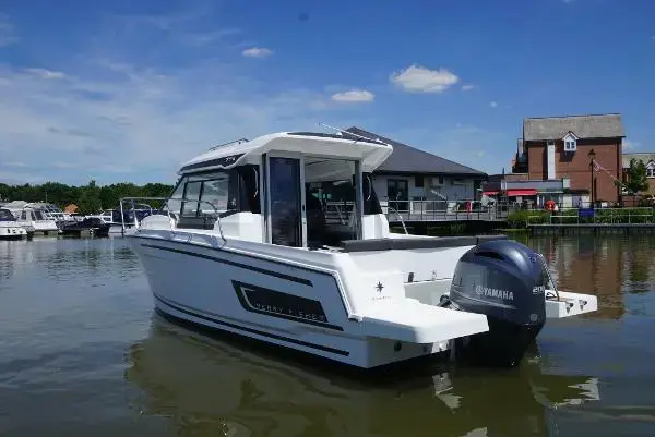 New Jeanneau Merry Fisher 795 (Series 2), Equipped with a Massive Specification – Powered by the larger Yamaha F250HP outboard engine, fitted with electric drive-by-wire, for comfortable and excellent manoeuvring. This boat comes with a Superb specification including: Trim Level premiere, Upgraded Zip-wake automatic trim tabs, Yamaha Joystick With Integrated Autopilot, Teak Swim platforms, Variable Yamaha Bow thruster, Diesel heating, Garmin plotter, Interior curtains & Interior carpets, U-shaped cockpit saloon & sundeck cushions, Electric windless, 220V shorepower & charger and more… Delivery to Burton Waters, Lincoln