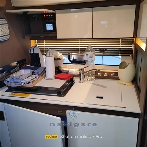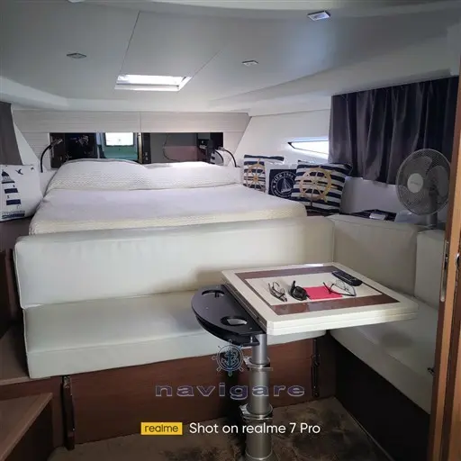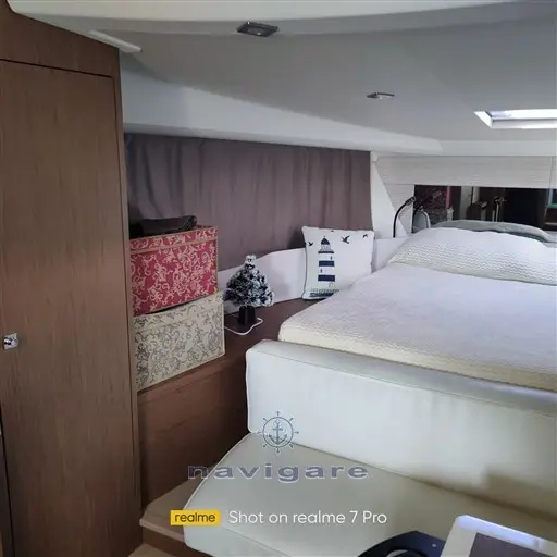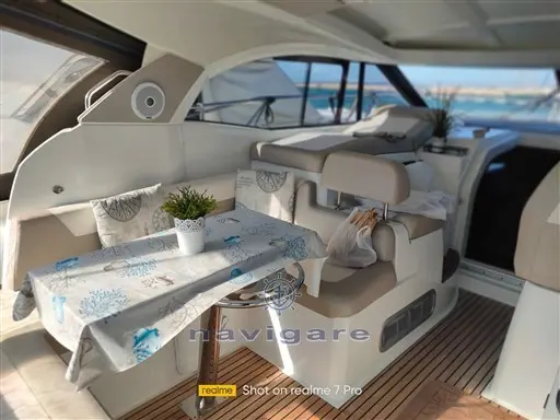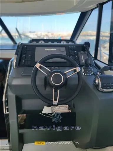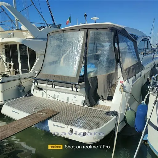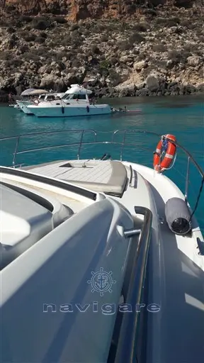 EXCELLENT CONDITION - 2 DOUBLE CABINS 1 BATHROOM - ALWAYS COVERED IN WINTER - MANOEUVRING JOYSTICK - - leather covers of steel handrails - White and blue cockpit lighting - stern and side and stern lighting - electric and motor hot water both in the stern and bow shower - TV instrumentation, cartographic GPS that can be interfaced with wheelhouse, echo sounder, VHF radio, radio with wifi and bluetooth connection, digital TV smartphone, - factory interior upholstery - lowerable internal table with the formation of a third bed. - bathroom, galley, second aft cabin. Folding bow cushions with formation of chairs and backrest. Mechanics authorized by Volvo every year Oil and filter change and total control of the engines +everything justifiable with invoices. Cleaning and antifouling every year and changing the zinc and polishing of the whole deck 2023 -Sliding door that separates the sleeping area from the kitchen and the other cabin Navigation equipment: Electronic engine control, Depth Sounder (RAYMARINE), GPS (RAYMARINE interfacciabile con timoneria), Joystick. Staging and technical: Engine Alarm, Electric Engine Compartment Opening, Water pressure pump, 4 Batteries (x140 WATT), 2 Deck Shower (una prua e una a poppa - CALDA E FREDDA), Electric Flaps, Hard top, Washbasin in the cockpit, Courtesy Lights (BIANCA E BLU), Underwater lights (BLU), Platform, Automatic Bilge Pump, Teak Cockpit, Shorepower connector, Rollbar, Electric Windlass, swimming ladder, cockpit table, Horn. Domestic Facilities onboard: Warm Water System, Inverter (3000 WATT), 12V Outlets, 220V Outlets, Electric Toilet. Entertainment: Speakers, Radio AM/FM, Hi-Fi. Kitchen and appliances: Galley. Upholstery: Cushions, Sunshade.