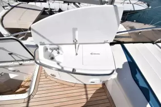 The Sunseeker Manhattan range brings a touch of class to the flybridge concept & the 52 excels in its execution! An excellent design with a practical and luxurious feel, this example has been kept in excellent condition and offers a wide array of extras including; air conditioning, Kholer generator, hydraulic passerelle, Hi-Lo platform, Raymarine navionics, teak-laid decking, aft deck winches and much more. Fully serviced in 2024, with many upgrades over the years, she is ready to go! EU TAX Paid!