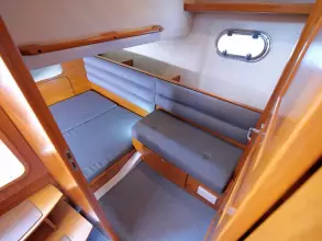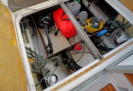 Twin lifting hatches, supported on gas struts in cockpit sole provide excellent access to locker space and sterngear