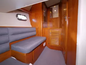 GRP moulded cockpit seating, moulded lockers within seat units.