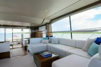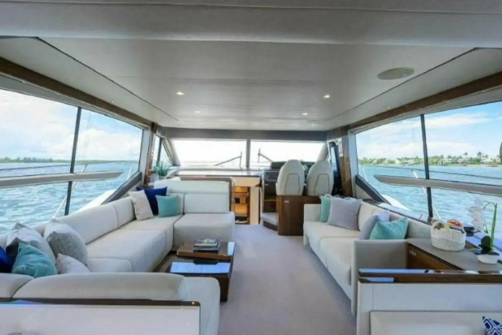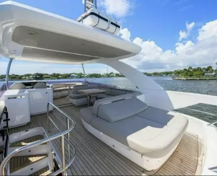 Introducing the 2019 Princess F62 Flybridge Yacht, a stunning vessel that presents a rare opportunity to own a meticulously upgraded, low-hour luxury yacht expertly managed for the tropical climate of Florida. This particular Princess F62 is equipped with an array of premium features and recent enhancements, making it a standout choice in its class.