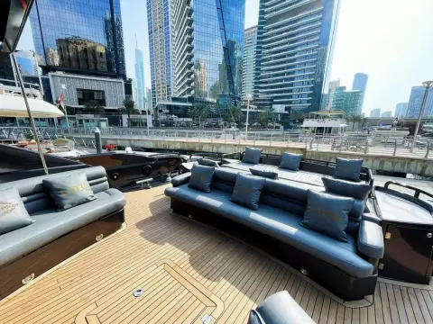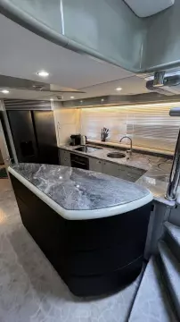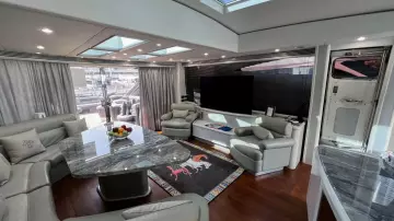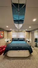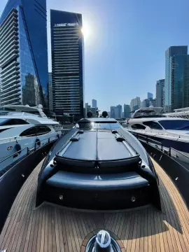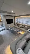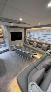 The Sunseeker Predator 95 is a performance yacht that combines comfortable accommodation with an enormous interior, an extraordinarily large deck area, and excellent performance. The exceptionally spacious top deck includes a covered saloon, opening on to an unusually large aft terrace, with steps down to the bathing platform. The flexible interior arrangements provide for a large saloon and adjacent galley, with a variety of accommodation options to suit the owner's preference.
