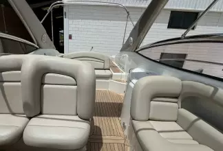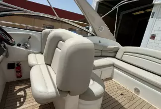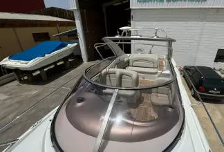 Her ample cockpit is perfect for enjoying days at sea with friends and family or even just as a couple! She has many areas to relax on including a seating, lounge, aft sun pad, bow sun pad and passenger seat next to helm. She also has a wet bar opposite the seating lounge to make hosting even easier!