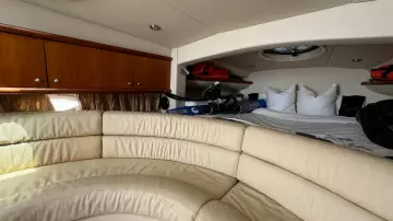 Her interior is perfect for if a couple wants to spend a couple of nights onboard. She has a U-shaped sofa with a bed at the bow. She also has a day head and galley below deck too.