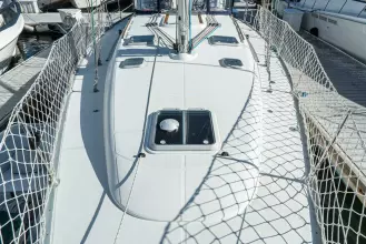 The Jeanneau 43 SO is known for quality, excellence and comfort. The Sun Odyssey 43 hull is hand-laid fiberglass with Kevlar rovings in the bow sections for added strength. Vinylester resin is used in the first two laminates for osmosis protection. Jeanneau does not use molded hull liners in any of its boats larger than 34 feet. Floors and longitudinal stringers are made from laminated plywood and bonded to the hull creating a strong structural grid. The results are a combination of classic lines, structural integrity and outstanding comfort for your sailing adventures.