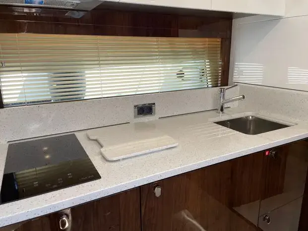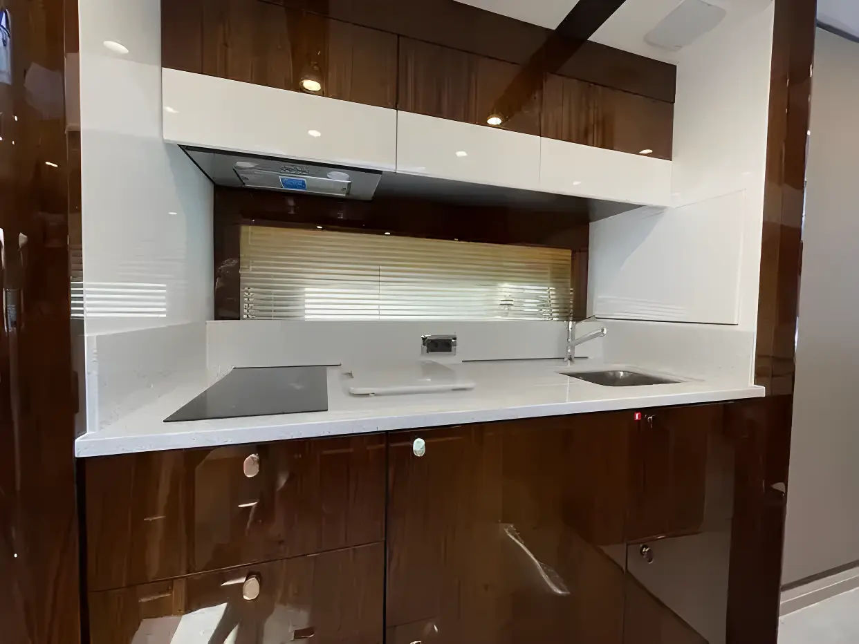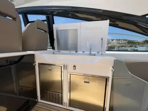 •    Cockpit wet bar with fridge, icemaker, griddle & sink