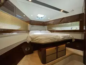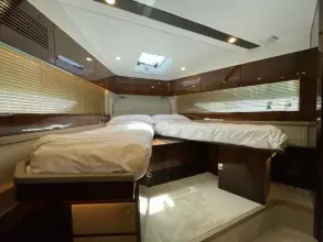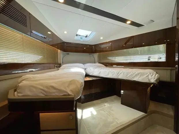 •    Fwd guest cabin with twin single berths with conversion to double, access to day head / en-suite