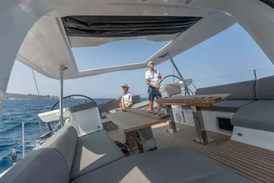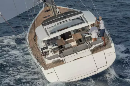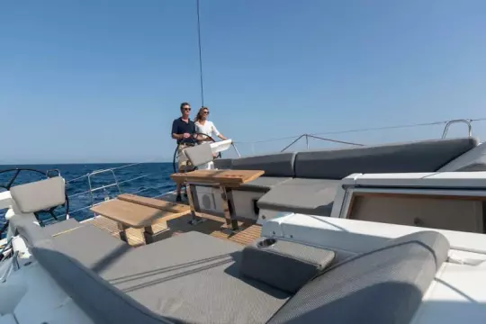 The JEANNEAU YACHTS 60 has been designed to be tailored to satisfy all preferences and cruising lifestyles. She allows numerous choices, such as an arch, a hardtop, an exterior galley, releasable forestay, furling mast, with which you would transform her from a sporty “Mediterranean” yacht to a fully-fledged offshore cruiser for longer voyages.