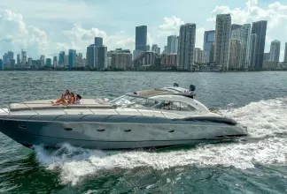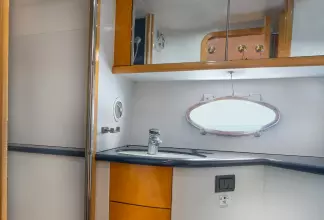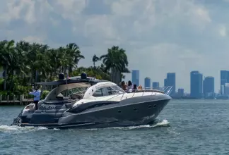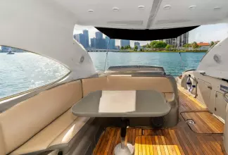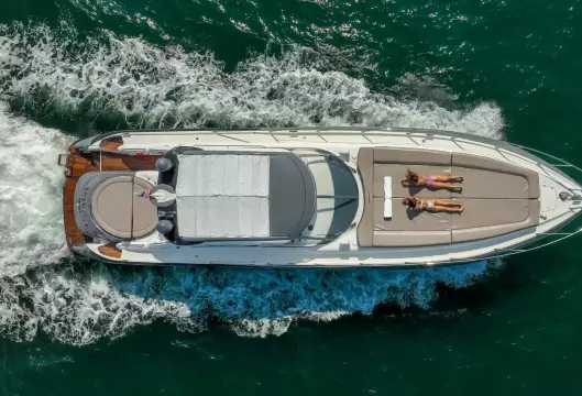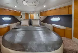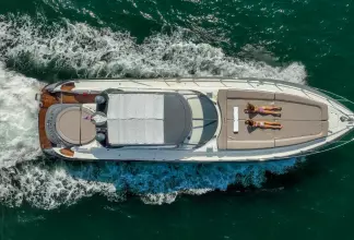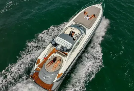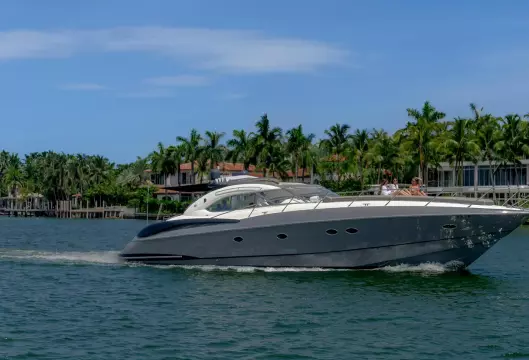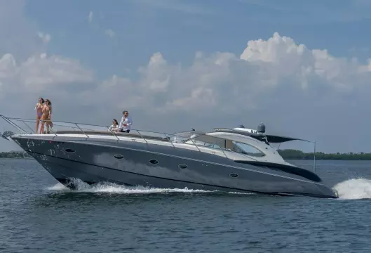 Built on exciting modern lines, the Sunseeker Predator 58 is capable of speeds up to 39 knots with a cruising range of between 320 and 410 nautical miles. For on-deck enjoyment, a camper - suntop and tonneau cover, a full wetbar with fridge and ice maker, a sink with hot and cold water, and a barbecue are standard. The 58 also features a teak bathing platform with steps and a fully-automatic passerelle and swim ladder, as well as a hot and cold swim shower. The luxurious modern styling of the interior complements the dramatic exterior lines. The stylish asymmetric saloon has a large dining area, and full entertainment facilities. The galley features a ceramic hob, microwave oven - grill, fridge - freezer, and ample storage space. The spacious forward stateroom has a double berth, with en suite head and shower. There are twin single berths in the two separate guest cabins, one with en suite head and shower. PREDATOR PERFORMANCE MOTORYACHTS: Sunseeker Performance Motoryachts are the result of 35 years of continuous design development. Performance Motoryachts combine performance, superb specifications, and luxurious comfort. SUNSEEKERS: Sunseeker is the largest privately-owned builder of production cruisers in the world today. The performance of its boats demonstrates the skills of its world-class design team. Sunseeker uses the best materials, the latest design techniques and construction methods, together with rigorous quality control procedures. With a choice of propulsion systems, layouts and furnishings and fittings, these boats are truly made to order. Sunseeker support is available all over the world.