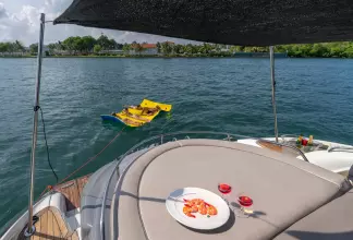 - Enhanced entertainment with UPGRADED JL audio system for onboard parties and relaxation!