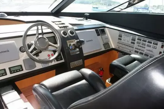 - Unique larger flybridge dashboard custom folded for this boat replace standard Fairline dashboard and accommodate the 2 Garmin 7015 screens and put helmsman on centreline of boat