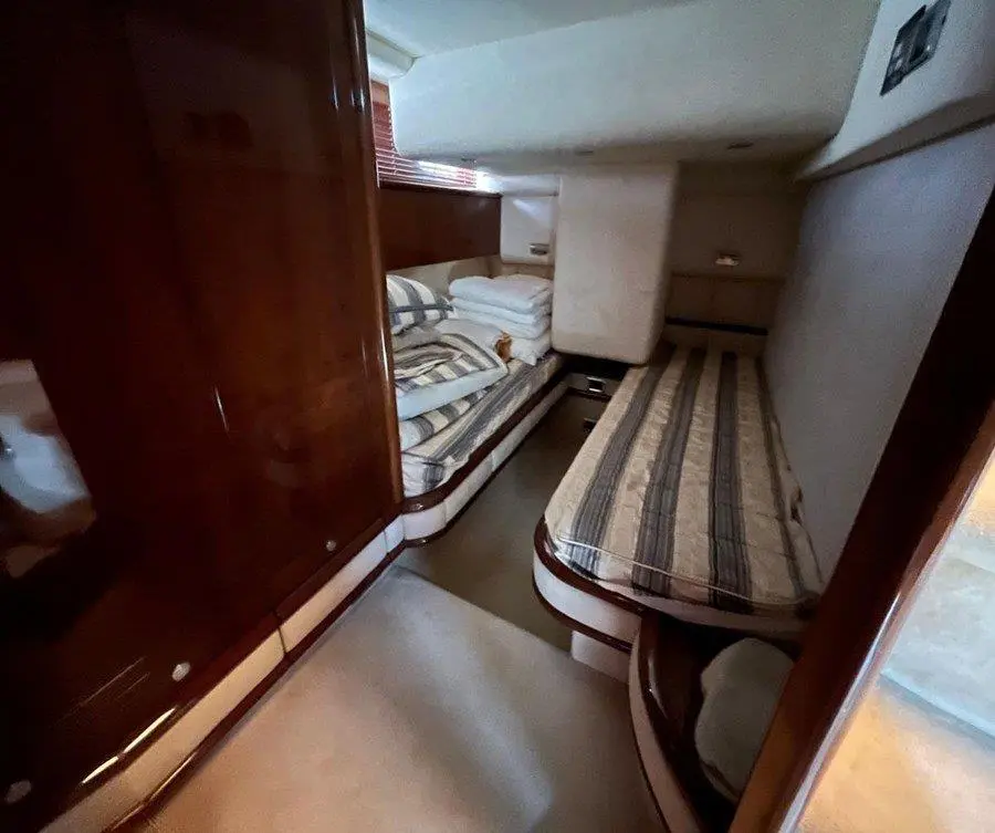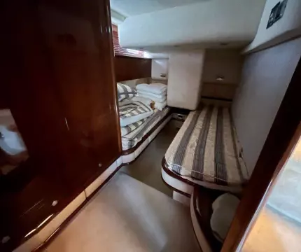 Price: plus broker's fee, Propulsion: shaft drive, Water tank: 963 ltr Equipment glass ceramic cook top, washing machine, toilet electric, owner cabin, guest cabin, bow cabin, salon, head, steering position inside, steering position on flybridge, fire extinguisher system, shore supply 220V, main circuit breaker, radio, cockpit cover, flybridge cover, winter cover, pressurized water system, warm water system, transom door to bathing platform, teak deck, cockpit table, bathing ladder, 220V plugs, underwater paint, holding tank, anchor windlass bow electric, anchor windlass stern electric, bathing platform hydraulic, gangway electric, trim tabs, electric/hydraulic, stern shower warm/could