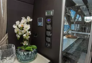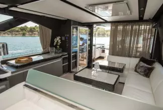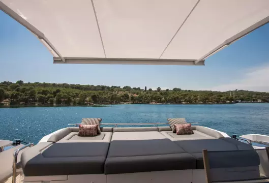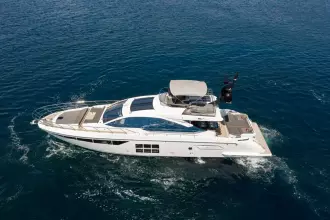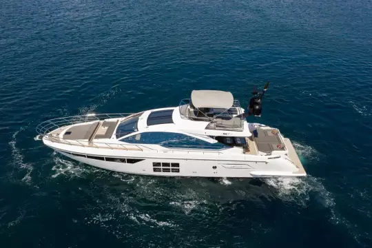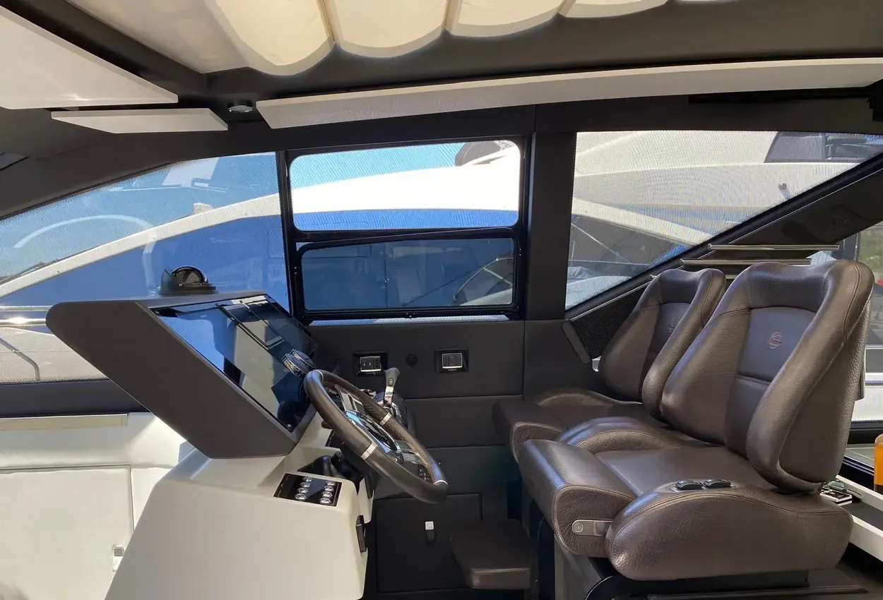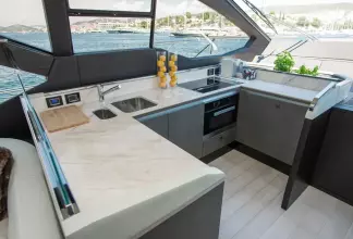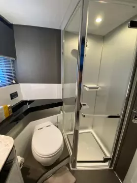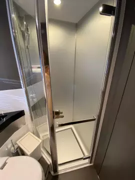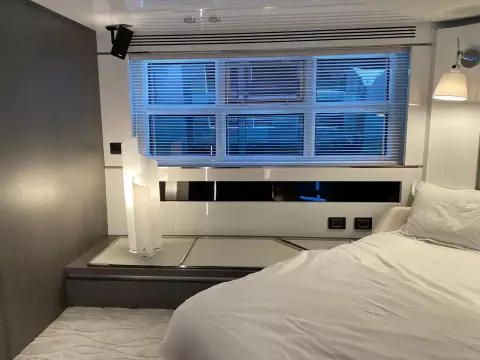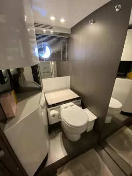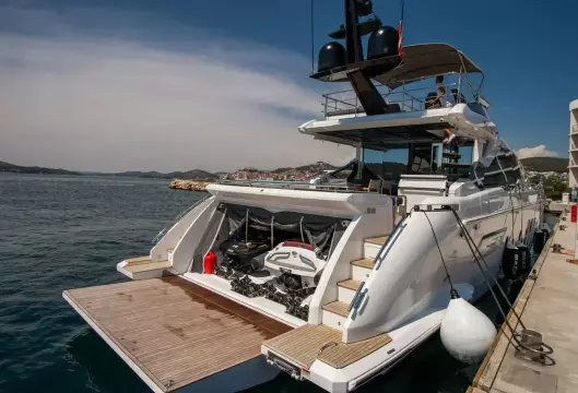 Condition: as new, Propulsion: pod drive Equipment 2nd refrigerator, extractor hood, glass ceramic cook top, sink, dishwasher, barbecue, icemaker, washing machine, watermaker, toilet vacuum, separate crew cabine, pantry in crew cabin, owner cabin, guest cabin, aft cabin, bow cabin, salon, steering position inside, steering position on flybridge, fire extinguisher system, shore supply 220V, main circuit breaker, cockpit speakers, sat. antenna auto search, satellite system, hard top, cockpit cover, window cover, sun shade / aftdeck, suncushion, pressurized water system, warm water system, teak deck, deck hatch, wetbar, cockpit table, bathing ladder, tender garage, under water light, underwater paint, holding tank, anchor windlass bow electric, anchor windlass stern electric, search light remote controlled, bathing platform hydraulic, gangway electric, cushion cover leather, stern shower warm/could