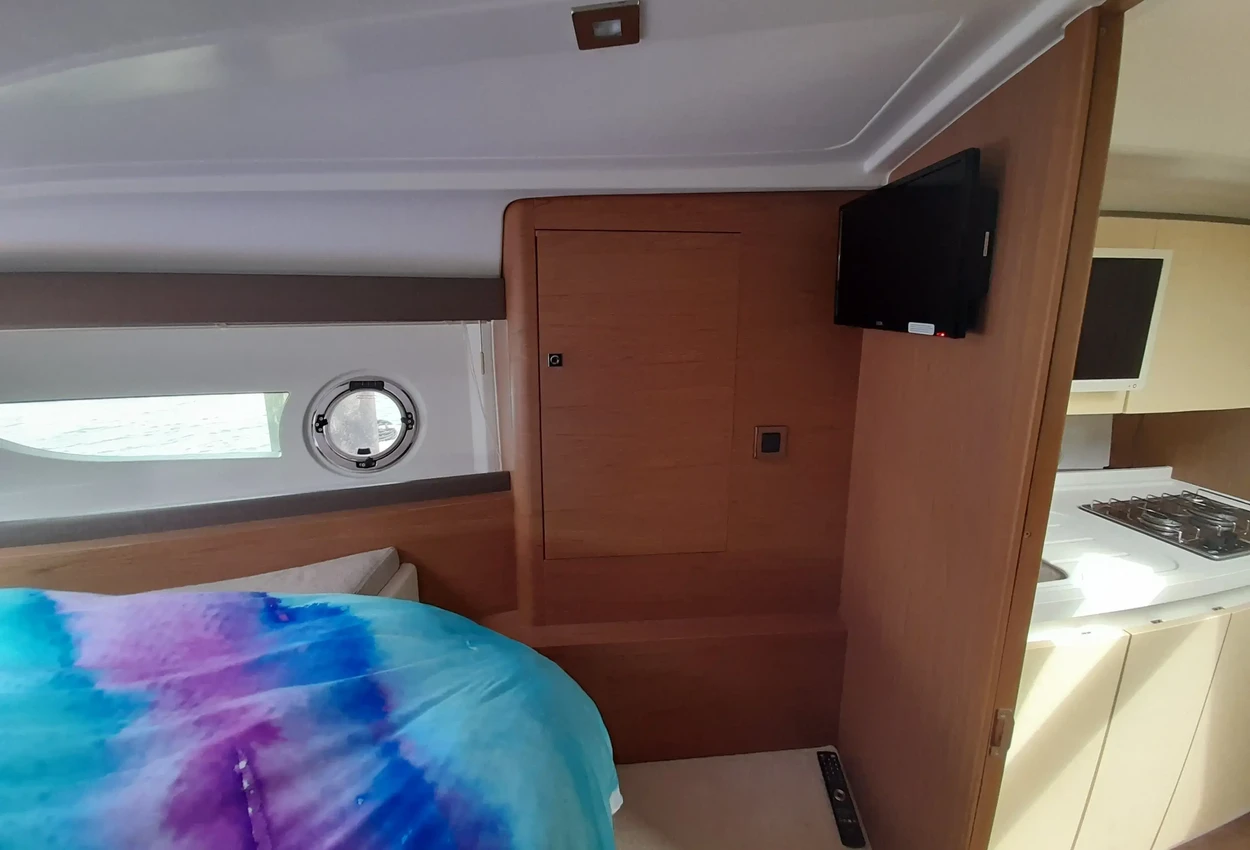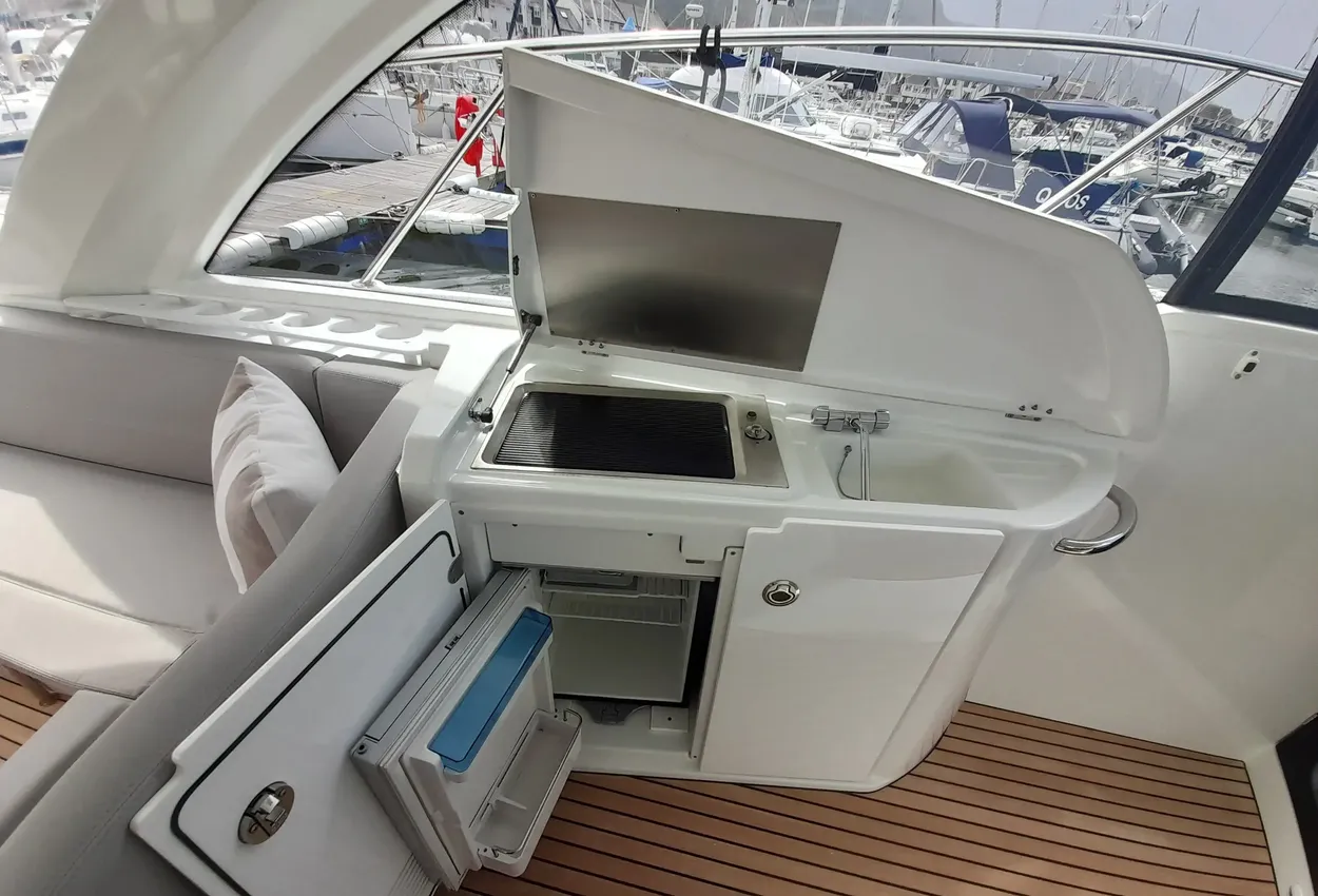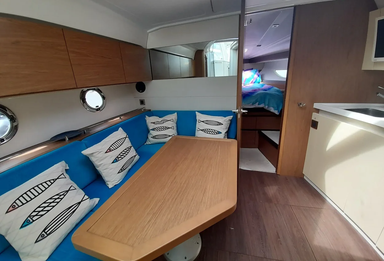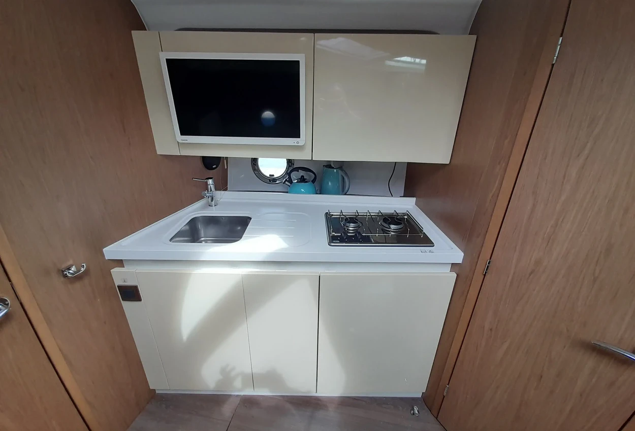 Inside the cabin, you'll find a well-appointed living space that exudes elegance and modernity. The open-plan layout features a fully equipped galley, a cozy seating area, and a luxurious master cabin. The attention to detail is evident in every aspect, from the high-quality finishes to the state-of-the-art technology that enhances your boating experience.